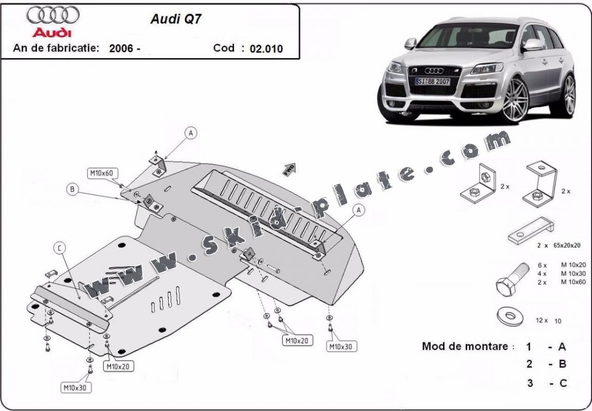 | The skid plate is new and fits perfectly for the Audi Q7, with the following engine/drive versions: S line y compris - manufactured between 2006 and 2015. |