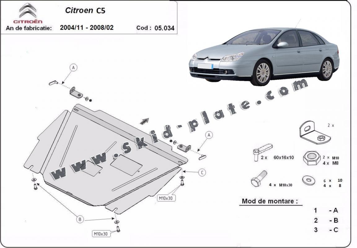 | The skid plate is new and fits perfectly for all versions of Citroen C5 manufactured between 2004 and 2007. |