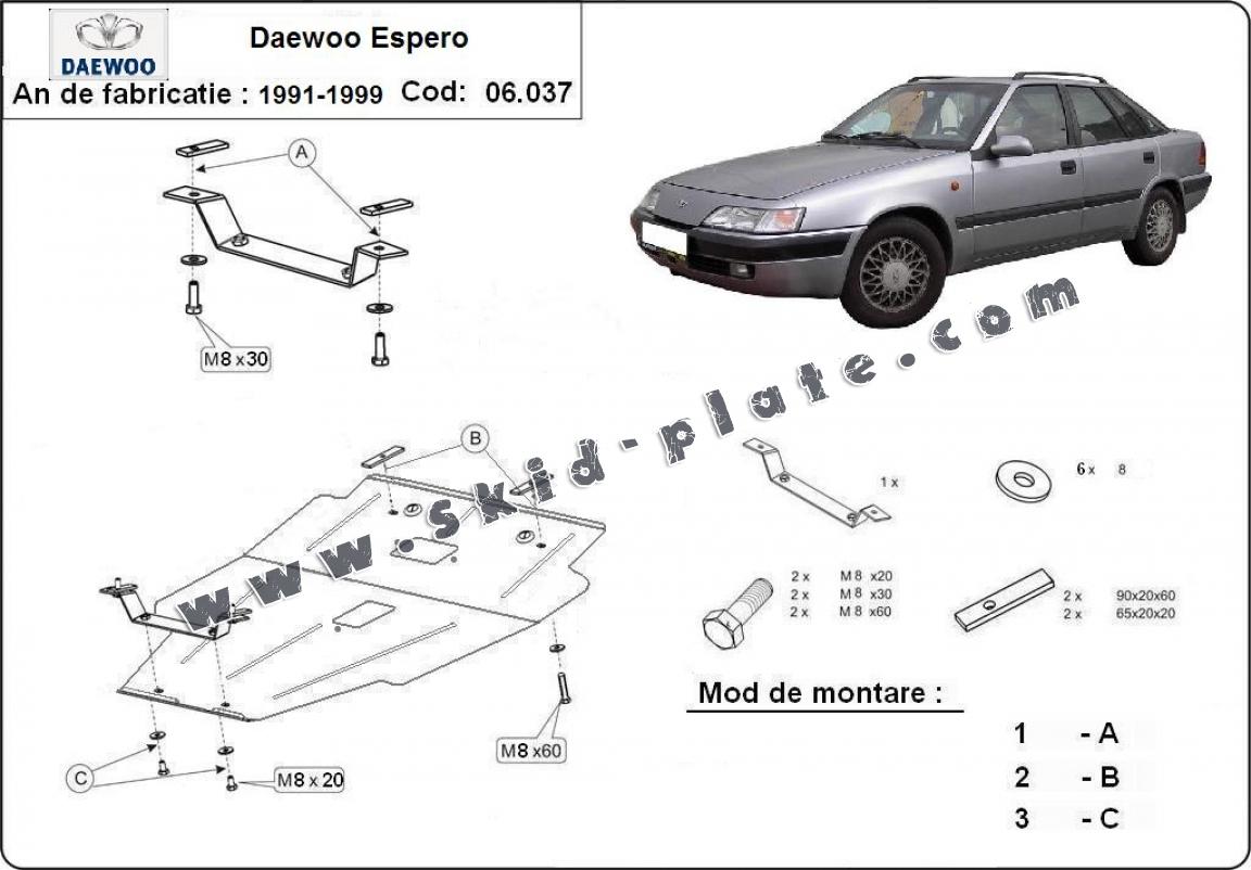 | The skid plate is new and fits perfectly for all versions of Daewoo Espero manufactured between 1991 and 1999. |