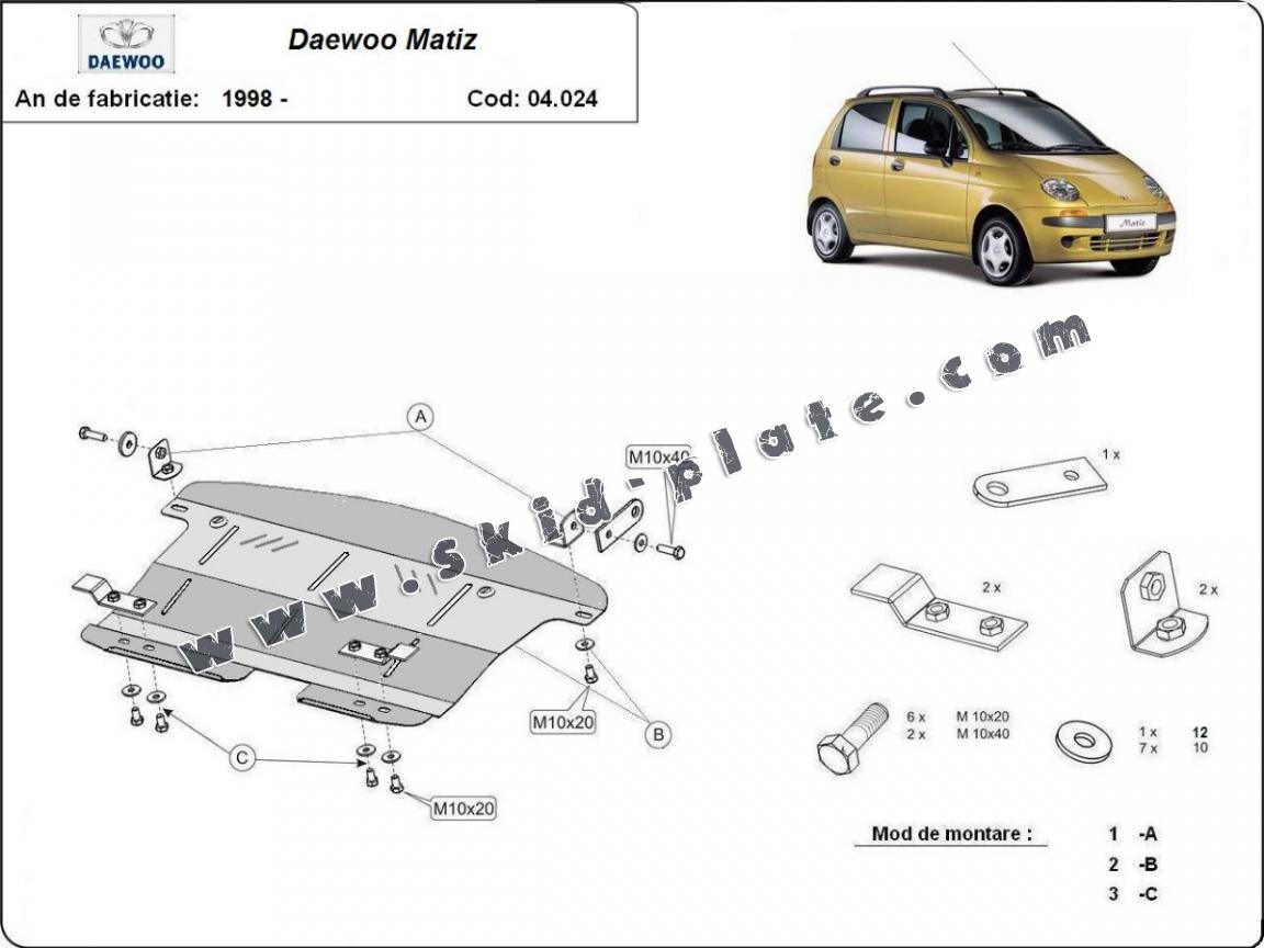 | The skid plate is new and fits perfectly for all versions of Daewoo Matiz manufactured between 1998 and 2004. |