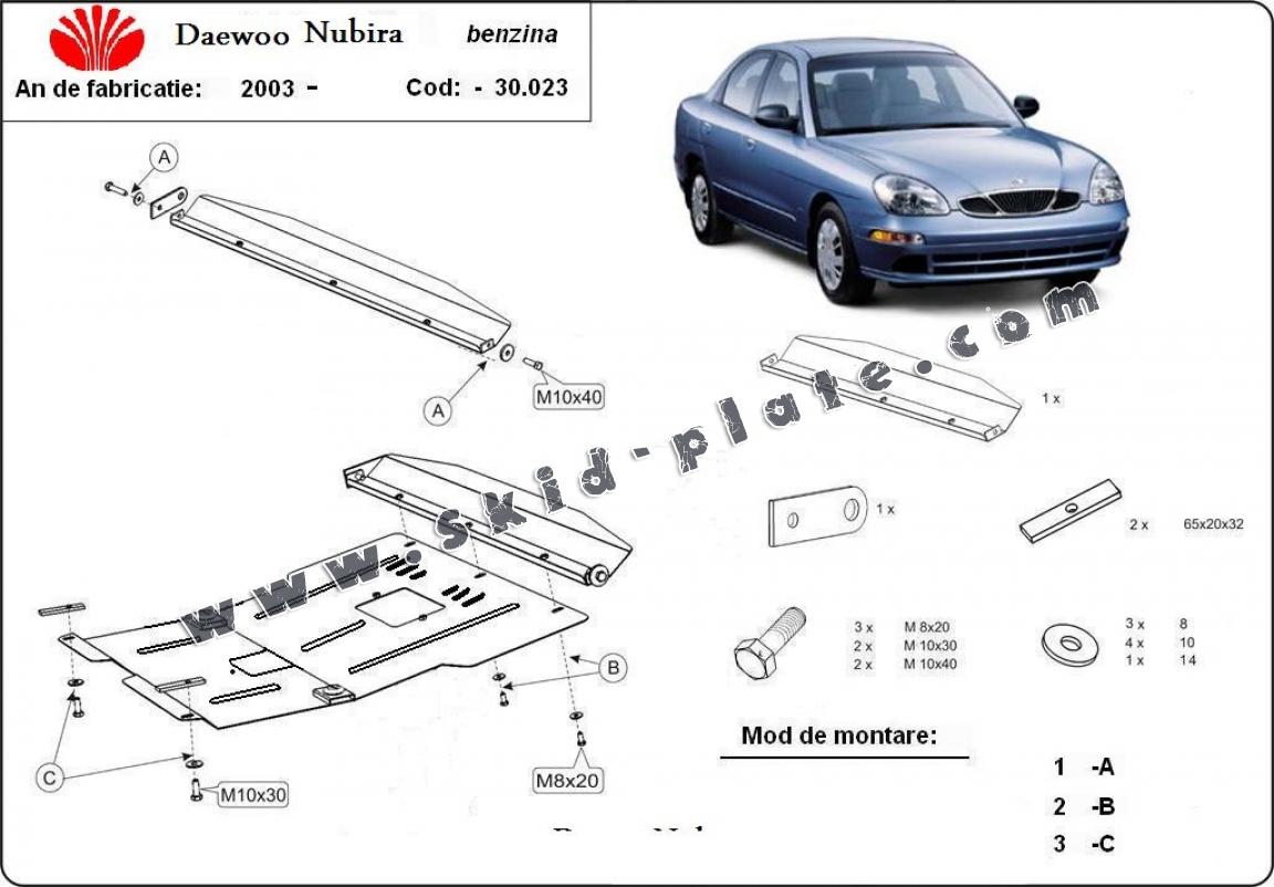 | The skid plate is new and fits perfectly for the Daewoo Nubira, with the following engine/drive versions: 1.6, 2.0 - manufactured between 2003 and 2009. |