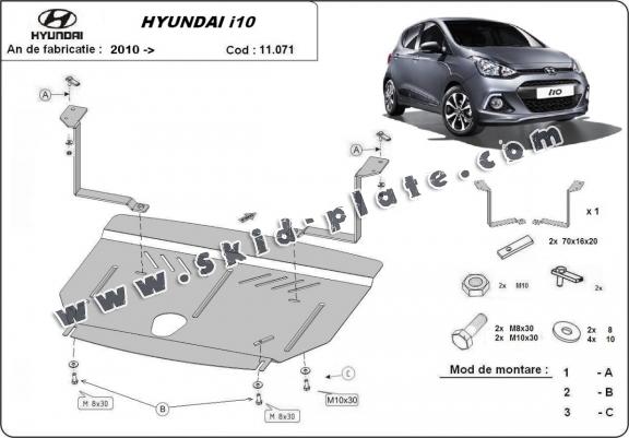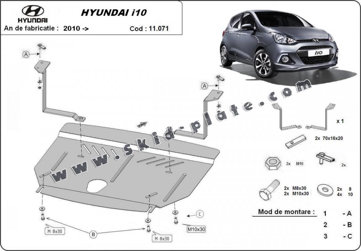 | The skid plate is new and fits perfectly for the Hyundai i10, with the following engine/drive versions: - manufactured between 2012 and 2017. |