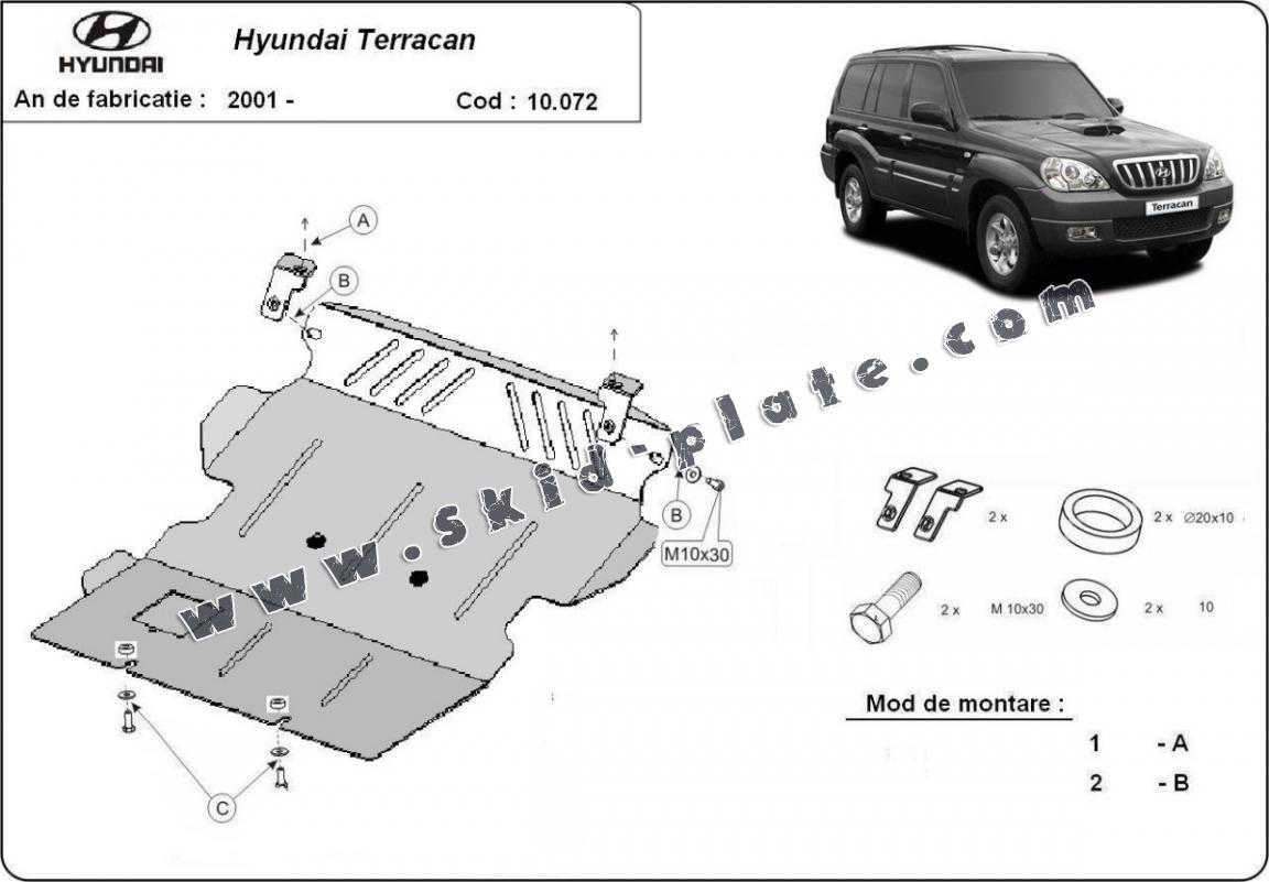 | The skid plate is new and fits perfectly for all versions of Hyundai Terracan manufactured between 2001 and 2007. |