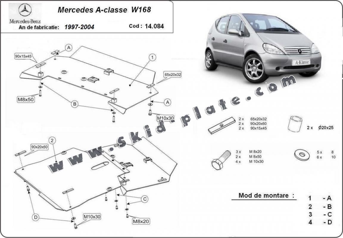 | The skid plate is new and fits perfectly for all versions of Mercedes A-Classe W168 manufactured between 1997 and 2004. |