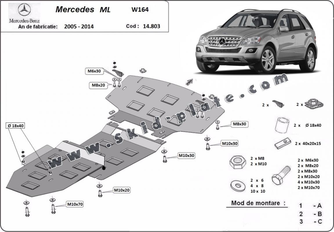| The skid plate is new and fits perfectly for all versions of Mercedes ML W164 manufactured between 2005 and 2011. |