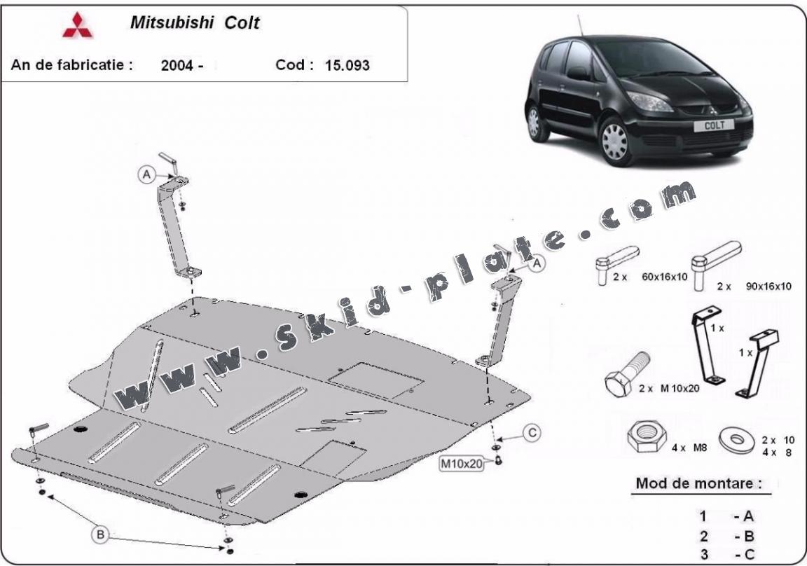 | The skid plate is new and fits perfectly for the Mitsubishi Colt, with the following engine/drive versions: 1.3, 1.6 - manufactured between 2002 and 2013. |