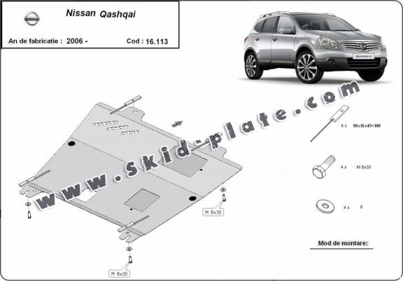 | The skid plate is new and fits perfectly for the Nissan Qashqai, with the following engine/drive versions: 1.6, 2.0 - manufactured between 2006 and 2013. |