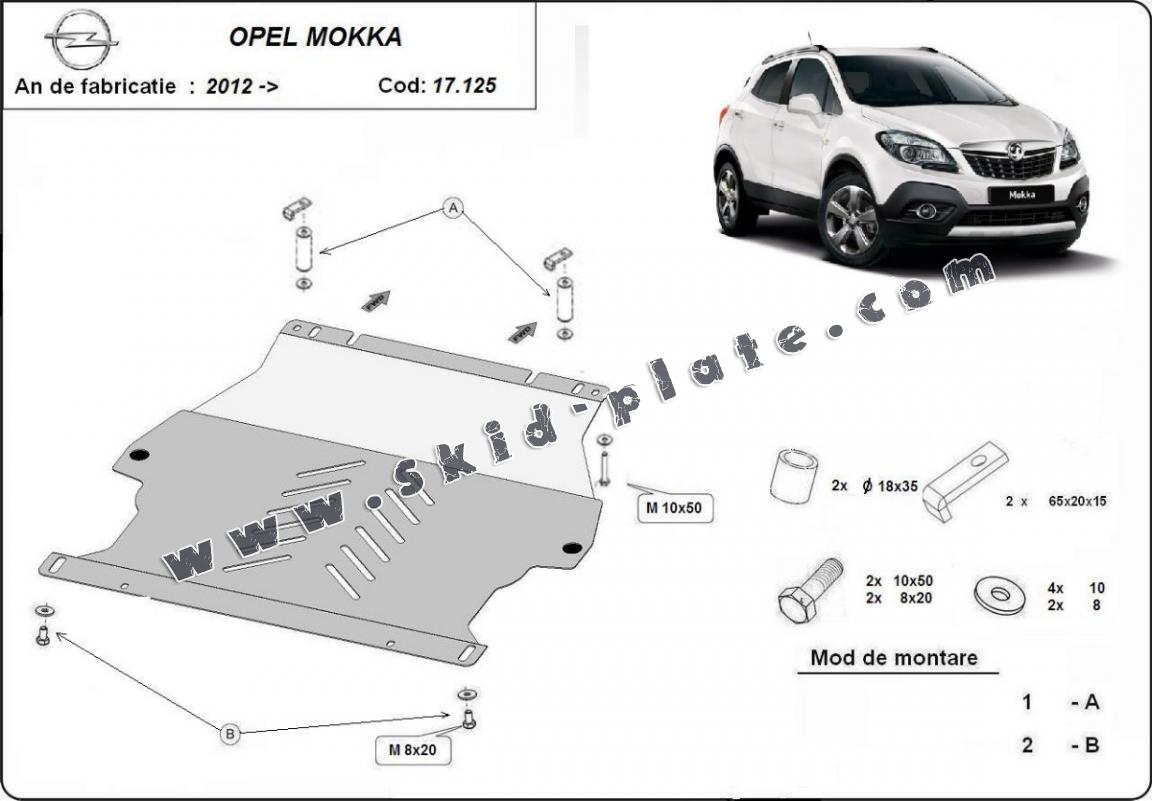 | The skid plate is new and fits perfectly for all versions of Opel Mokka manufactured between 2012 and 2019. |