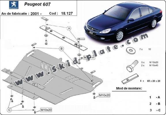 Steel skid plate for Peugeot 607