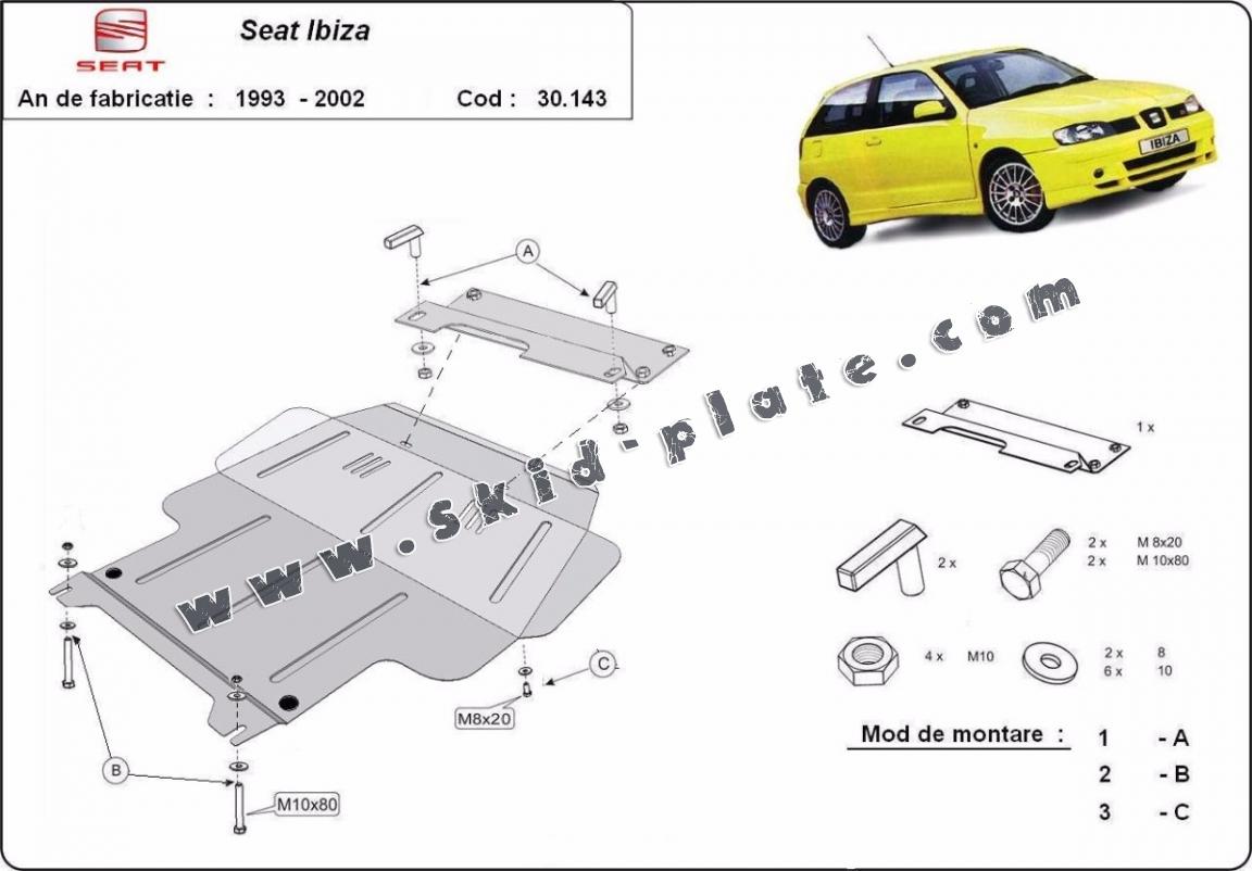 | The skid plate is new and fits perfectly for the Seat Ibiza, with the following engine/drive versions: 1,0 2,0 - manufactured between 1993 and 2002. |