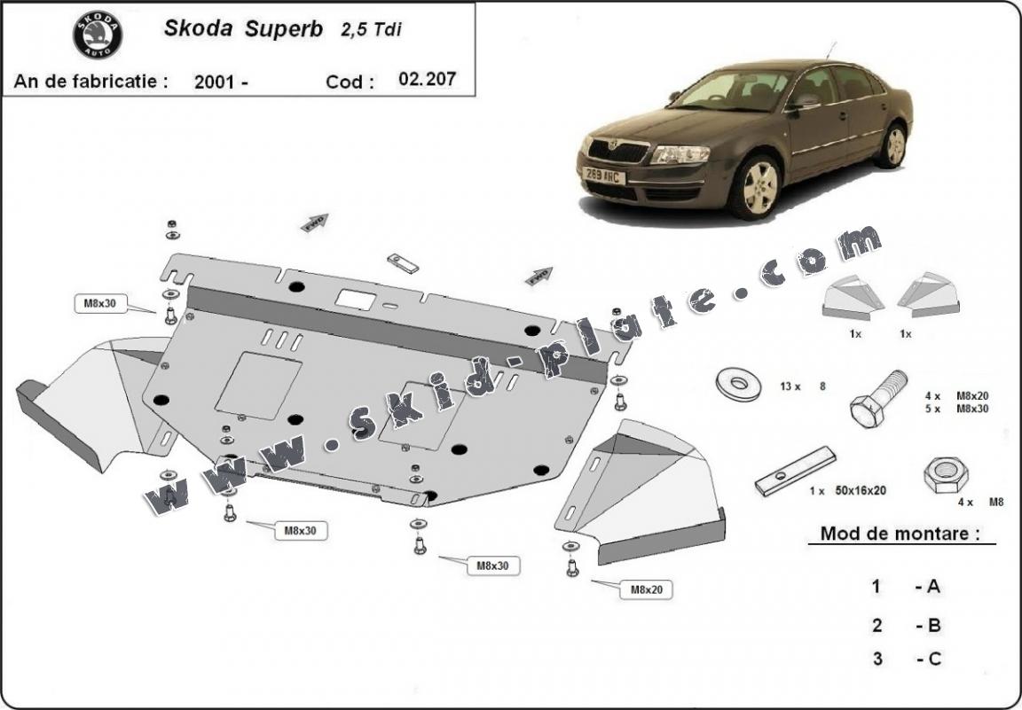 Steel skid plate for Skoda Superb - 2.5 Tdi, V6