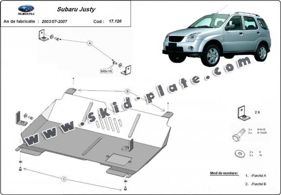 | The skid plate is new and fits perfectly for the Subaru Justy, with the following engine/drive versions: - manufactured between 2003 and 2007. |