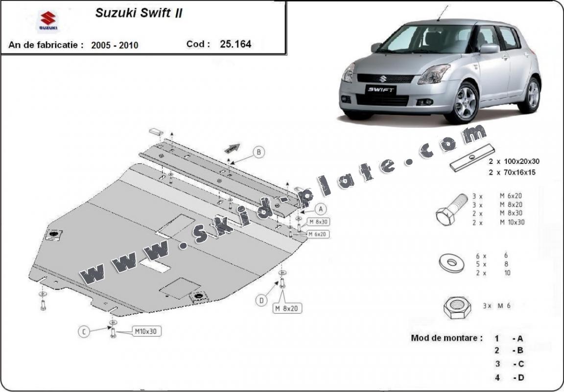 | The skid plate is new and fits perfectly for all versions of Suzuki Swift 2 manufactured between 2005 and 2010. |