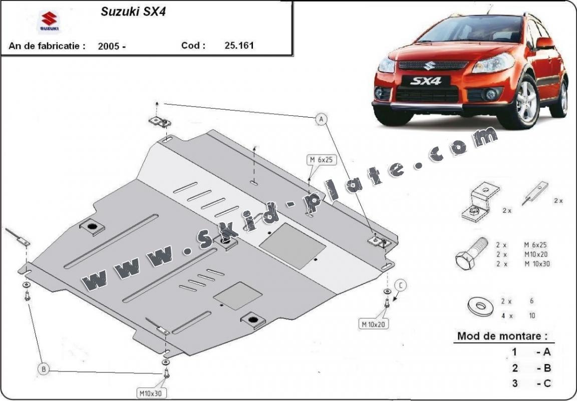 | The skid plate is new and fits perfectly for the Suzuki SX 4, with the following engine/drive versions: 2WD, 4WD - manufactured between 2006 and 2013. |