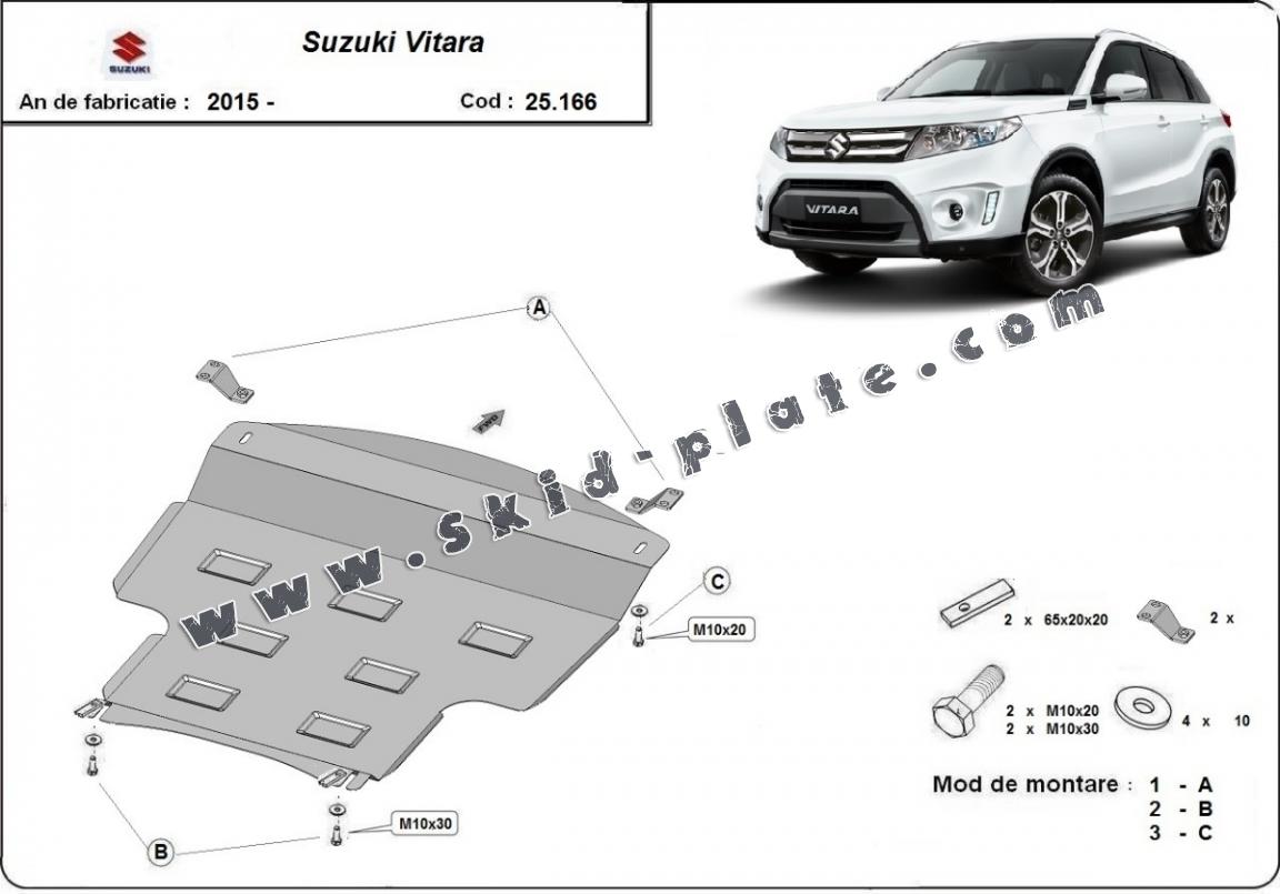 | The skid plate is new and fits perfectly for the Suzuki Vitara, with the following engine/drive versions: - manufactured between 2015 and 2023. |