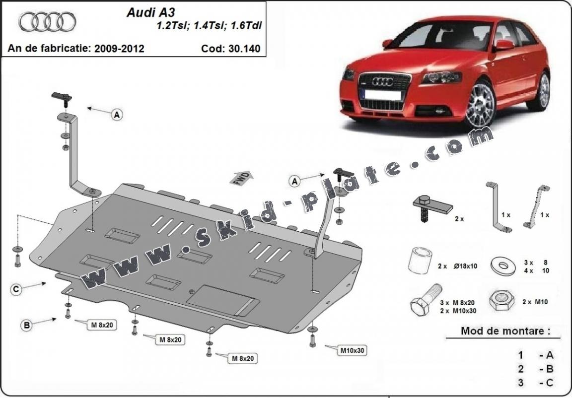 | The skid plate is new and fits perfectly for the Audi A3, with the following engine/drive versions: 1.2, 1.4 Tsi, 1.6 Tdi - 2.0 TDI - manufactured between 2008 and 2012. |