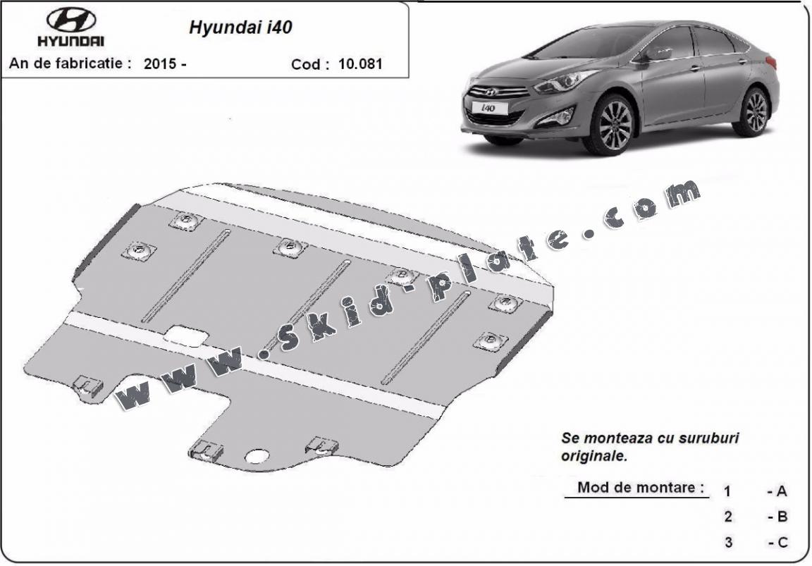 | The skid plate is new and fits perfectly for all versions of Hyundai i40 manufactured between 2015 and 2019. |