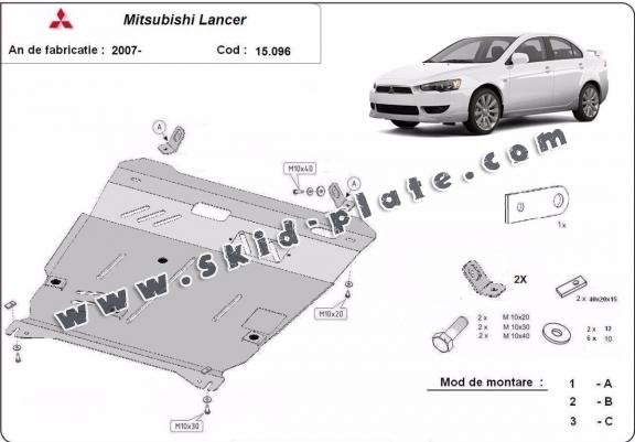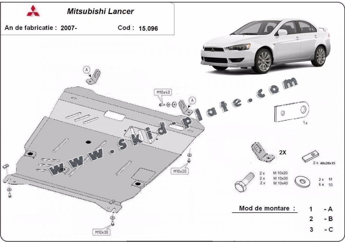 Steel skid plate for the protection of the engine and the gearbox for Mitsubishi Lancer