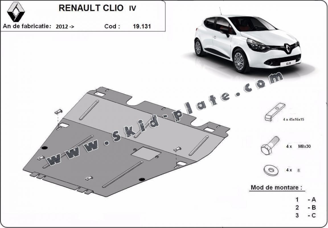 Steel skid plate for the protection of the engine and the gearbox for Renault Clio 4