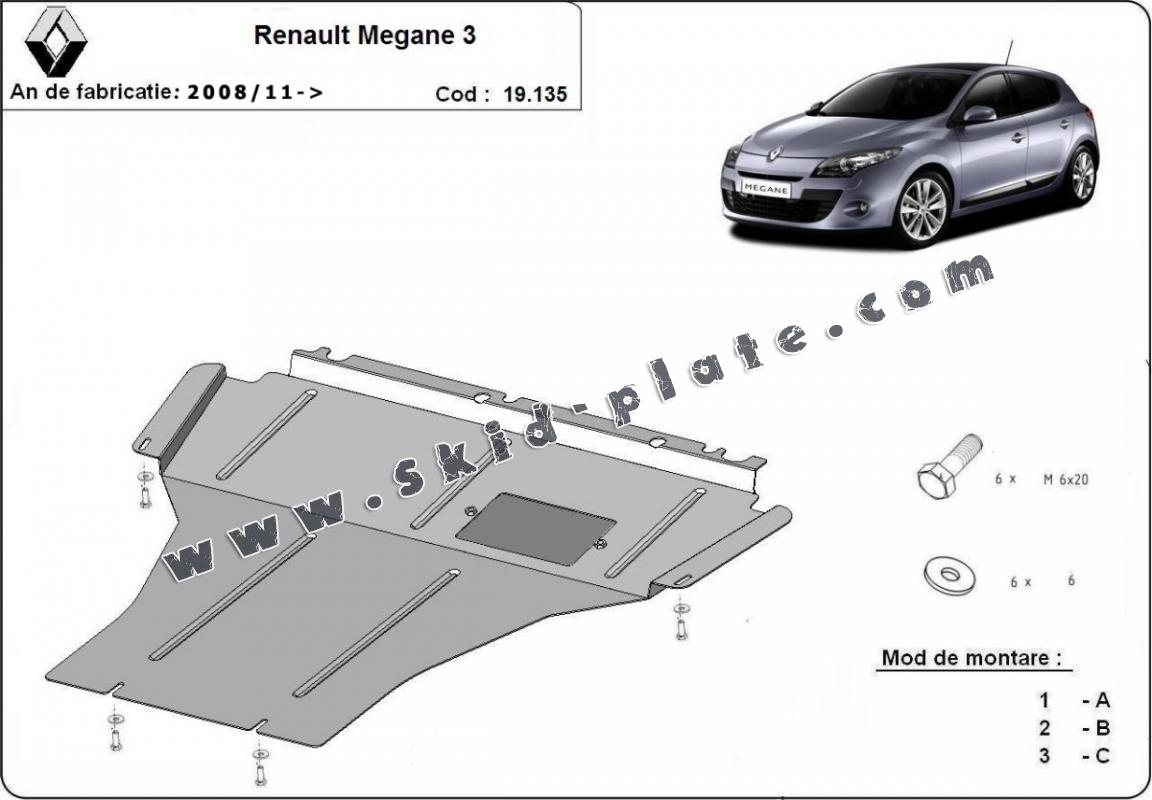 Steel skid plate for the protection of the engine and the gearbox for Renault Megane 3