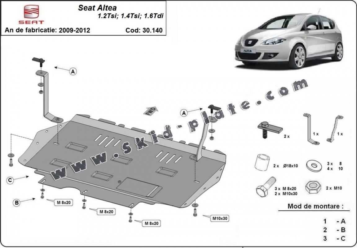 | The skid plate is new and fits perfectly for the Seat Altea, with the following engine/drive versions: 1.2,1.4Tsi,1.6Tdi - manufactured between 2010 and 2015. |