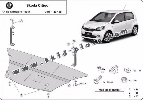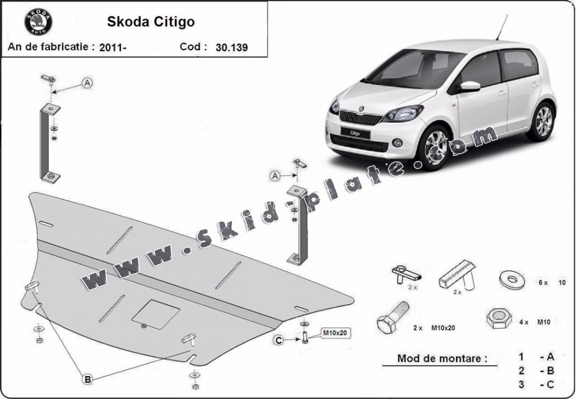 Steel skid plate for the protection of the engine and the gearbox for Skoda Citigo