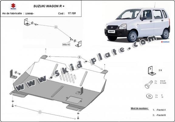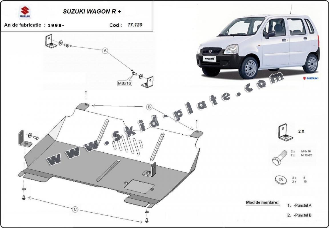 Steel skid plate for the protection of the engine and the gearbox for Suzuki Wagon R+