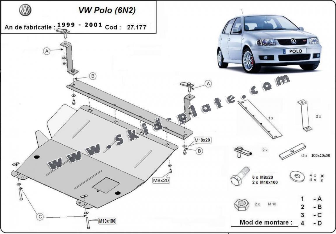 | The skid plate is new and fits perfectly for the VW Polo 6n2, with the following engine/drive versions: 1.0, 1.2, 1.4, 1.6 - manufactured between 1999 and 2001. |