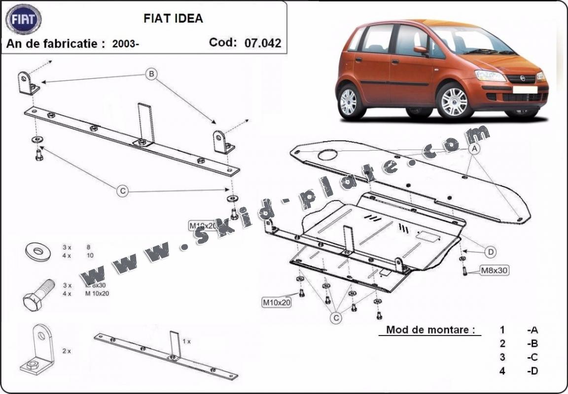 Steel skid plate for the protection of the engine, gearbox and differential for Fiat Idea
