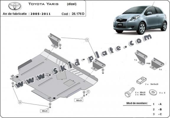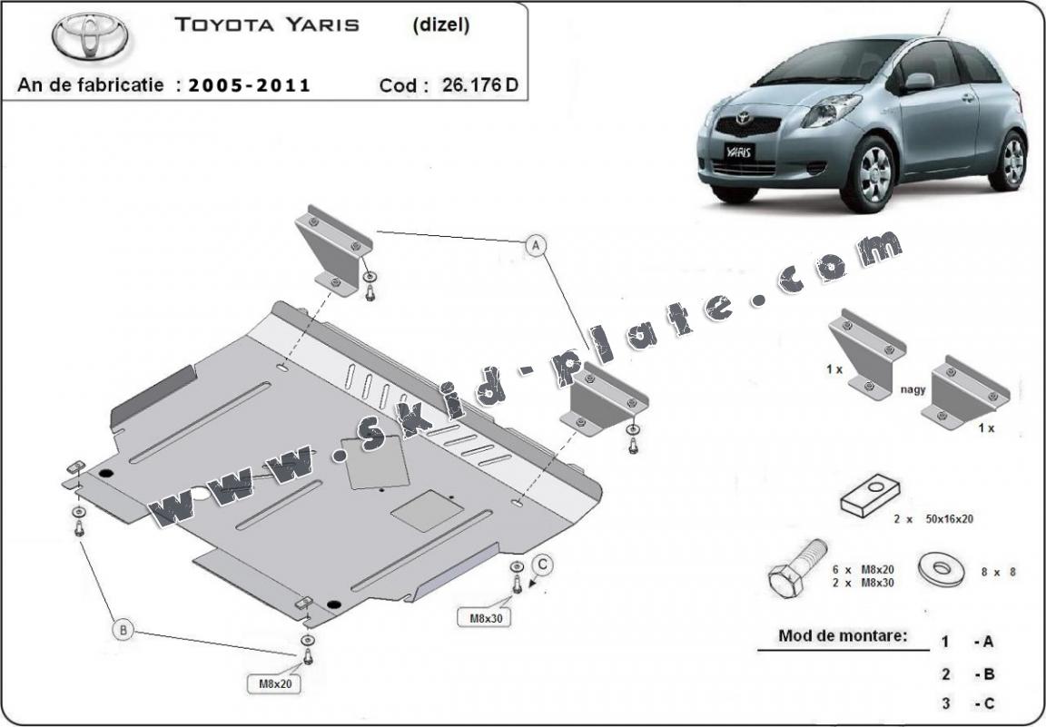 | The skid plate is new and fits perfectly for the Toyota Yaris, with the following engine/drive versions: diesel - manufactured between 2005 and 2011. |