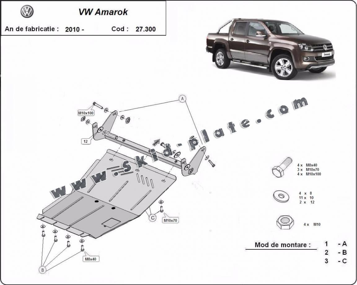 | The skid plate is new and fits perfectly for the Volkswagen Amarok, with the following engine/drive versions: 2.0L, 3.0L - manufactured between 2010 and 2022. |