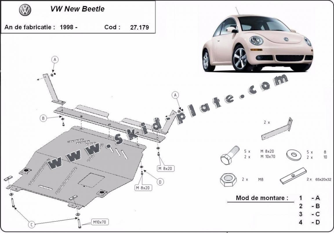 | The skid plate is new and fits perfectly for the Volkswagen New Beetle, with the following engine/drive versions: 1.6,1.8 Turbo,2.0, 1.9 TDI - manufactured between 1998 and 2011. |