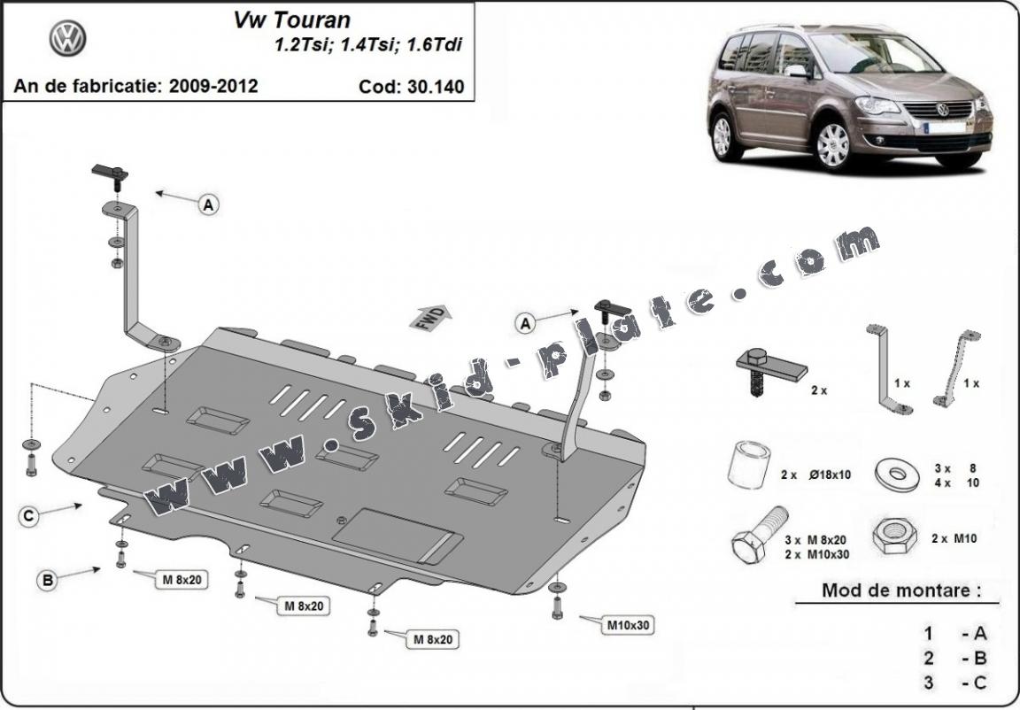 Steel skid plate for Volkswagen Touran
