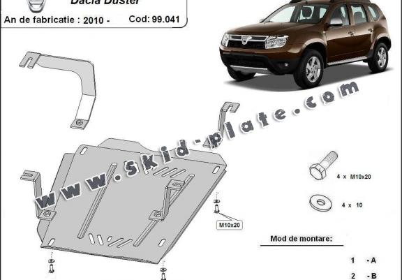 | The skid plate is new and fits perfectly for the Dacia Duster, with the following engine/drive versions: 4x4 - manufactured between 2010 and 2017. |