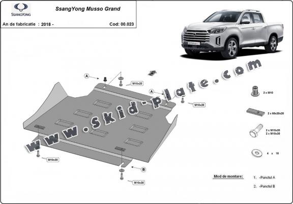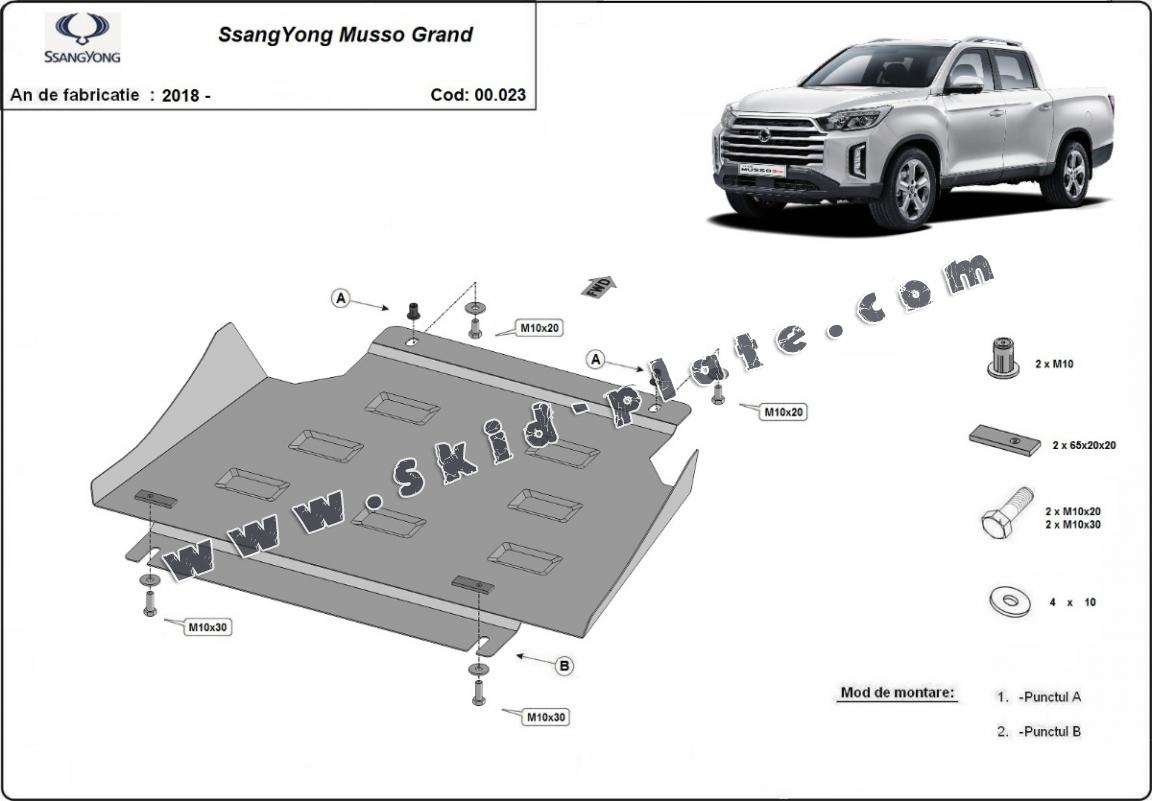 | The skid plate is new and fits perfectly for all versions of Ssangyong Musso Grand manufactured between 2018 and 2025. |
