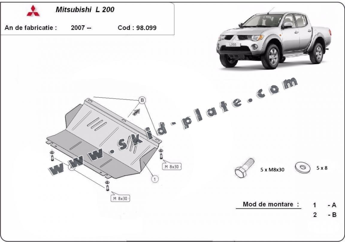 | The skid plate is new and fits perfectly for all versions of Mitsubishi L 200 manufactured between 2005 and 2015. |