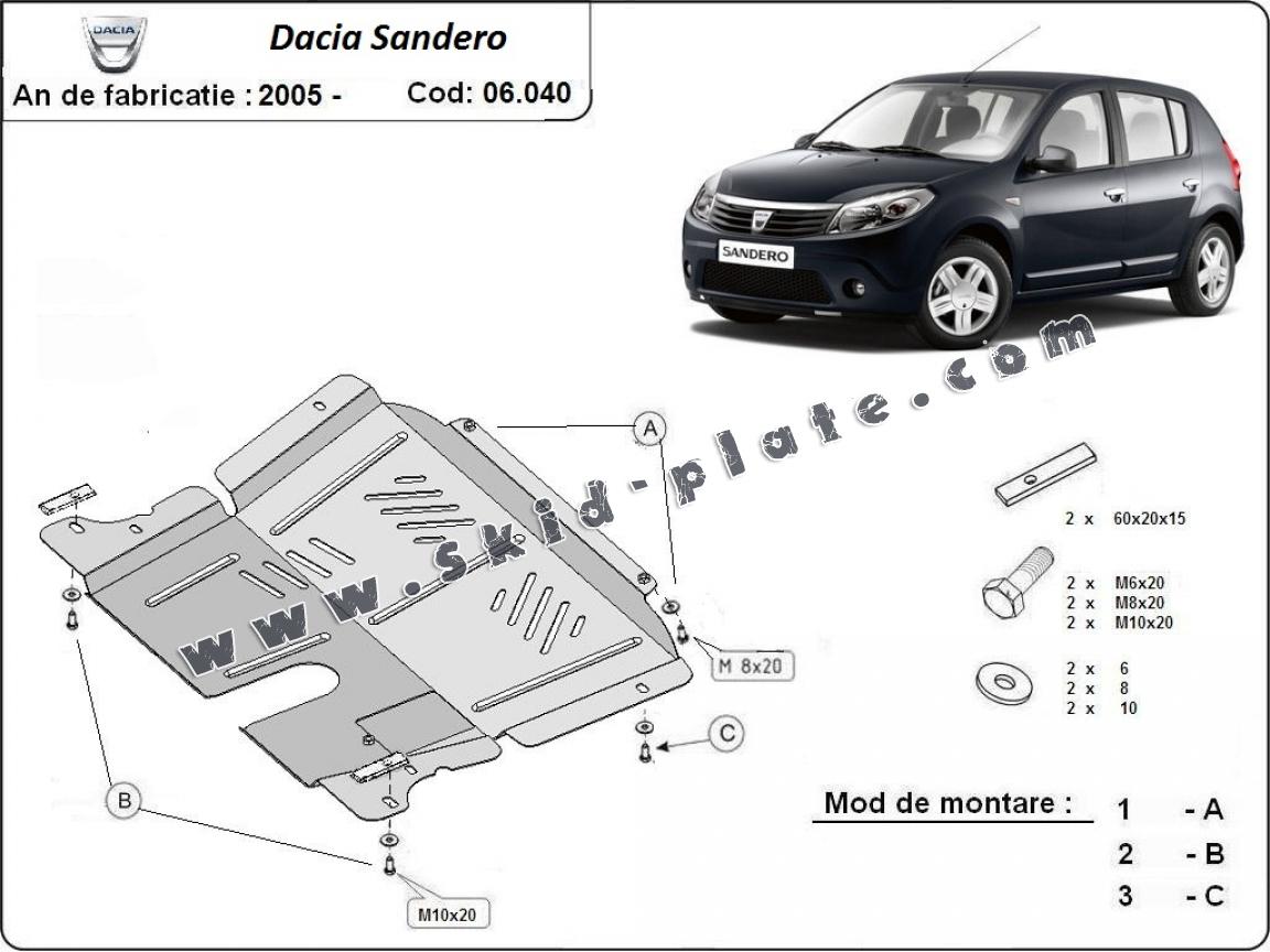 | The skid plate is new and fits perfectly for all versions of Dacia Sandero manufactured between 2005 and 2012. |