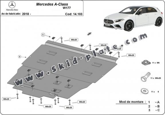 | The skid plate is new and fits perfectly for all versions of Mercedes A-Class W177 manufactured between 2018 and 2025. |