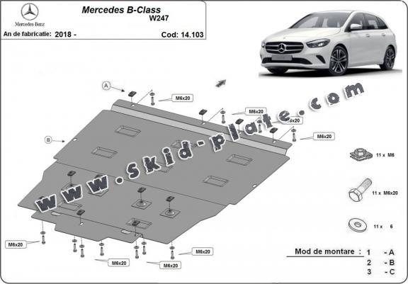 | The skid plate is new and fits perfectly for all versions of Mercedes B-Class W247 manufactured between 2019 and 2025. |