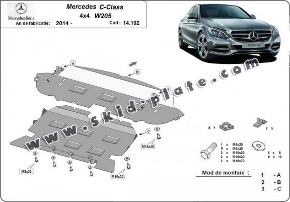| The skid plate is new and fits perfectly for the Mercedes C-Class W205 4x4, with the following engine/drive versions: 4x4 - manufactured between 2014 and 2021. |