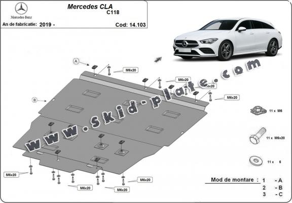 | The skid plate is new and fits perfectly for all versions of Mercedes CLA C118 manufactured between 2019 and 2025. |