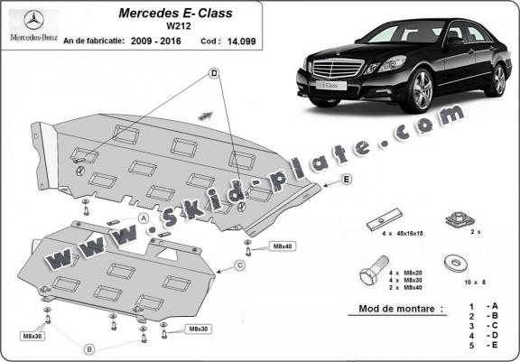| The skid plate is new and fits perfectly for the Mercedes E-Classe W212, with the following engine/drive versions: Only 4x2 - manufactured between 2009 and 2016. |