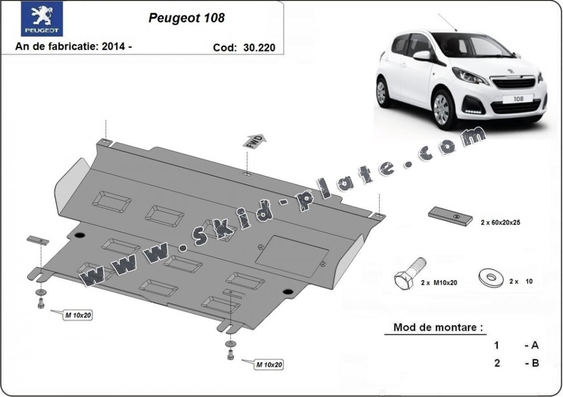 | The skid plate is new and fits perfectly for all versions of Peugeot 108 manufactured between 2014 and 2021. |