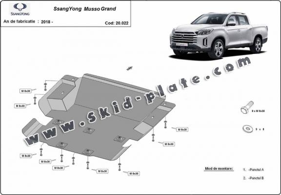 | The skid plate is new and fits perfectly for all versions of Ssangyong Musso Grand manufactured between 2018 and 2025. |