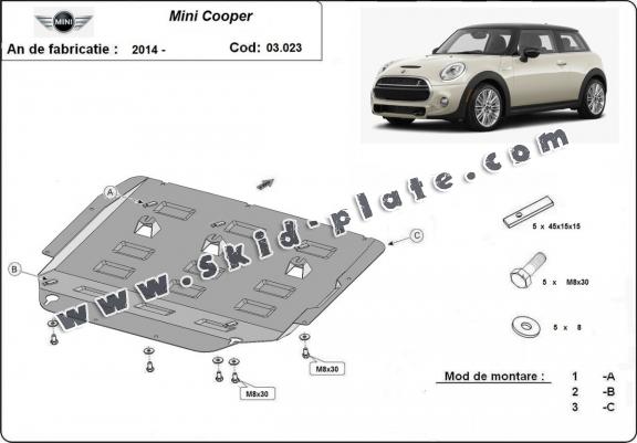 Steel skid plate for the protection of the engine and the gearbox for Mini Cooper F55/56