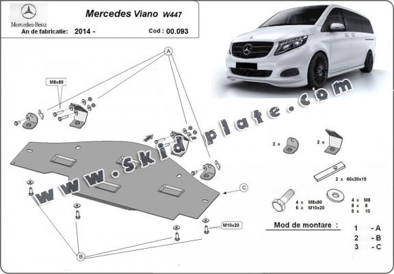| The skid plate is new and fits perfectly for the Mercedes Viano W447 4x2, 1.6 D, with the following engine/drive versions: 4x2, 1.6 D - manufactured between 2014 and 2025. |