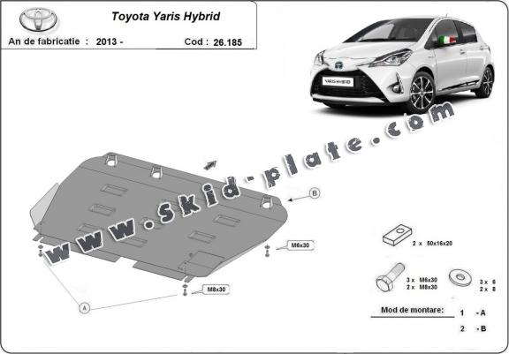 | The skid plate is new and fits perfectly for the Toyota Yaris Hybrid, with the following engine/drive versions: XP150, all, Hybrid - manufactured between 2013 and 2021. |