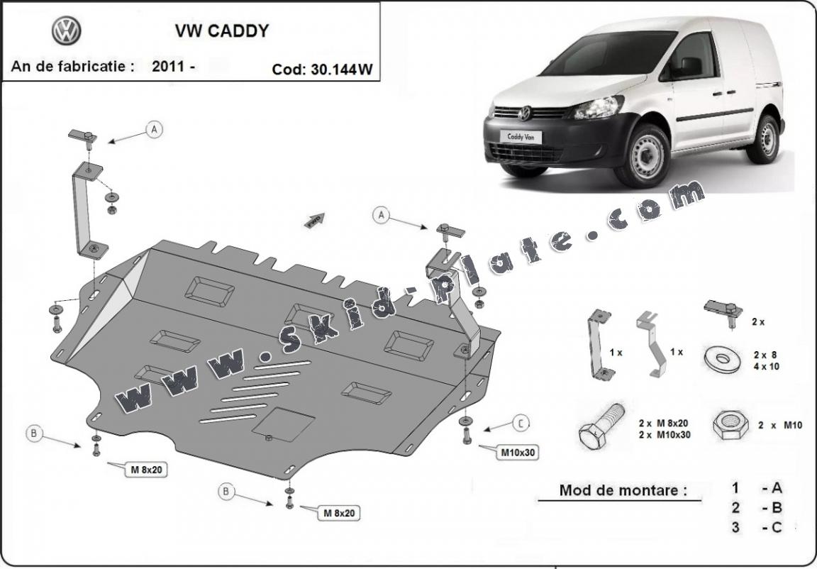 | The skid plate is new and fits perfectly for the VW Caddy, with the following engine/drive versions: ALL - manufactured between 2011 and 2020. |
