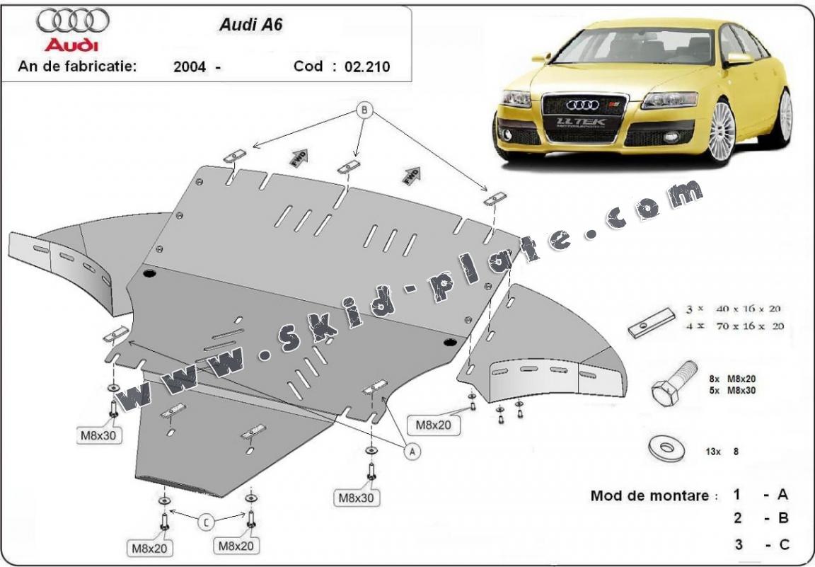 | The skid plate is new and fits perfectly for the Audi A6 avec laterale, with the following engine/drive versions: - manufactured between 2004 and 2011. |