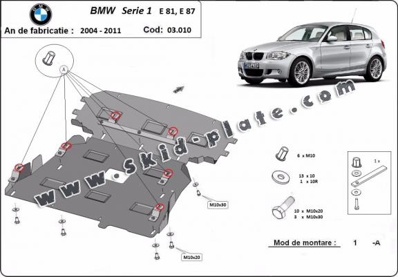 | The skid plate is new and fits perfectly for all versions of BMW Seria 1 E81;E87;E82 manufactured between 2004 and 2011. |